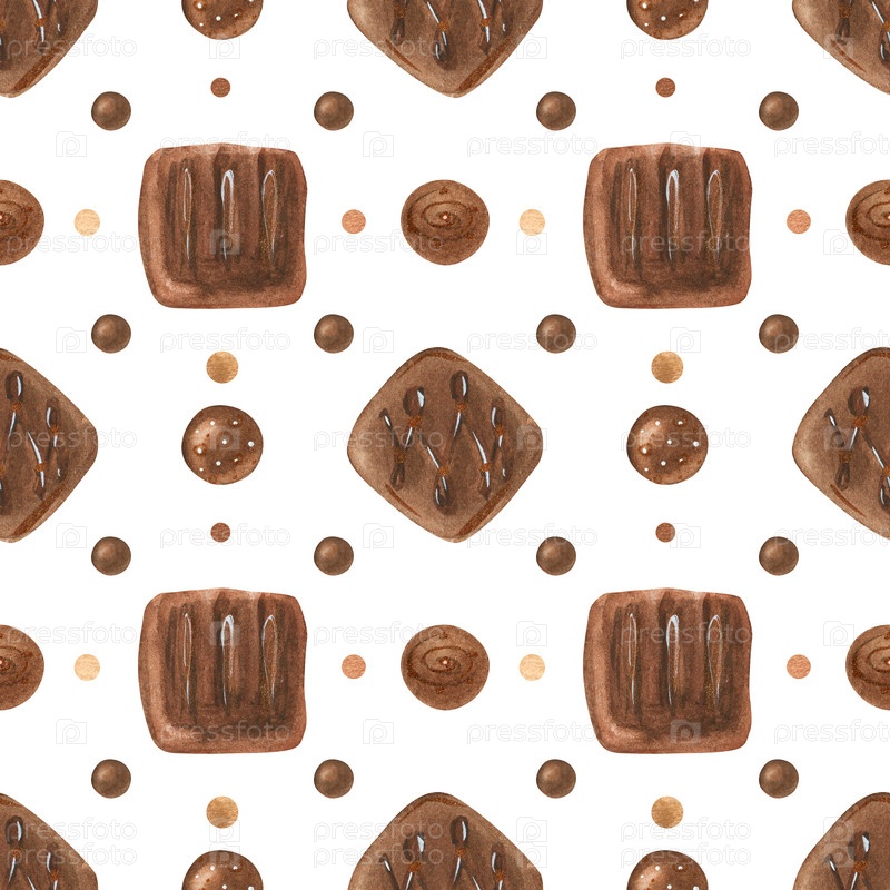 Сладкий романтический акварельный узор с шоколадными конфетами