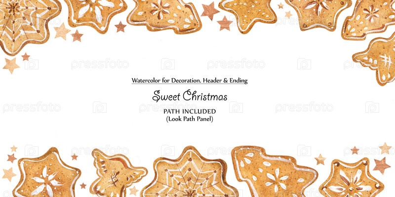 Рождественская акварельная рамка с шоколадом и печеньем