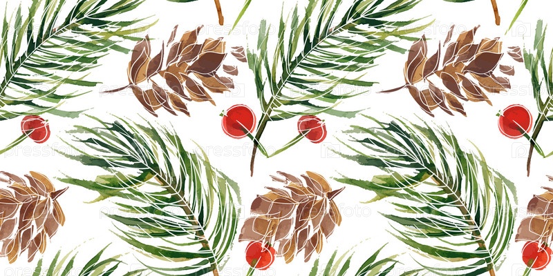 Рождественский цветочный прорисованный акварельный бесшовный узор