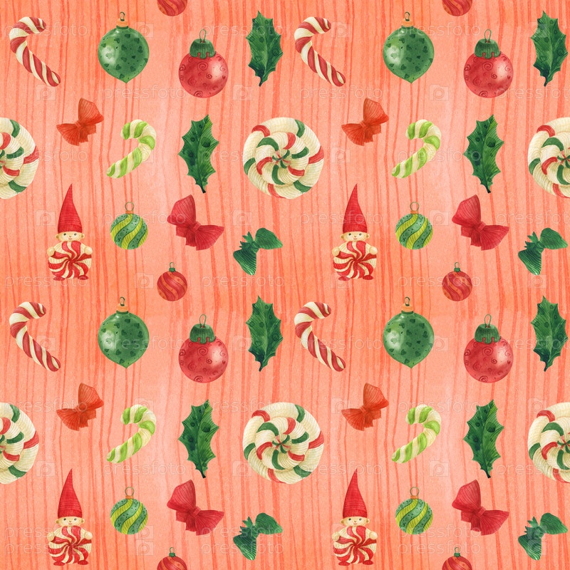 Рождественский красный узор с гномом, леденцами и стеклянными безделушками