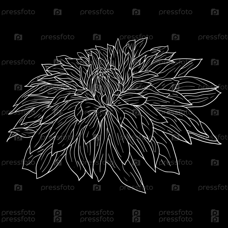 Красивый монохромный эскиз, черно-белый цветок георгина изолирован