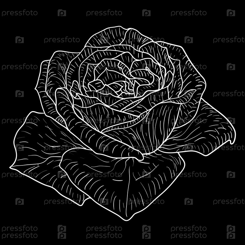 Красивый монохромный эскиз, изолированный черно-белый цветок розы