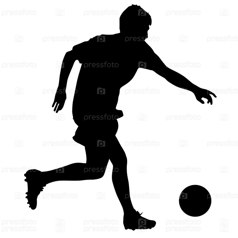 Силуэты футболистов с мячом на белом фоне