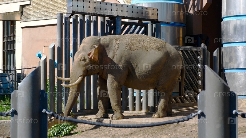 МОСКВА - 27 СЕНТЯБРЯ: Большой азиатский слон Московского зоопарка в вольере 27 сентября 2019 года в Москве, Россия