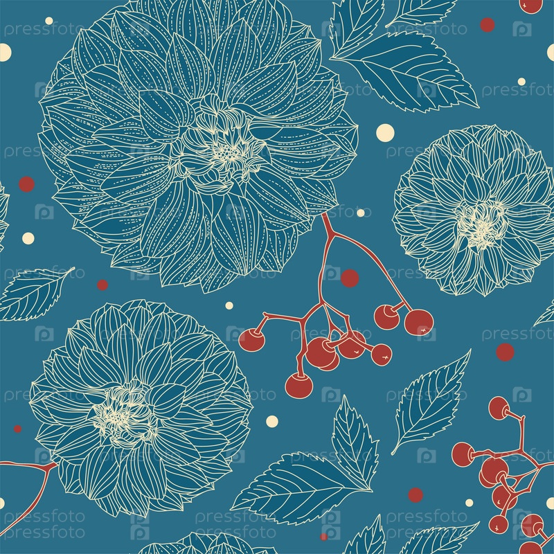 Бирюзовый цветочный бесшовный узор из цветов георгина в винтажном стиле