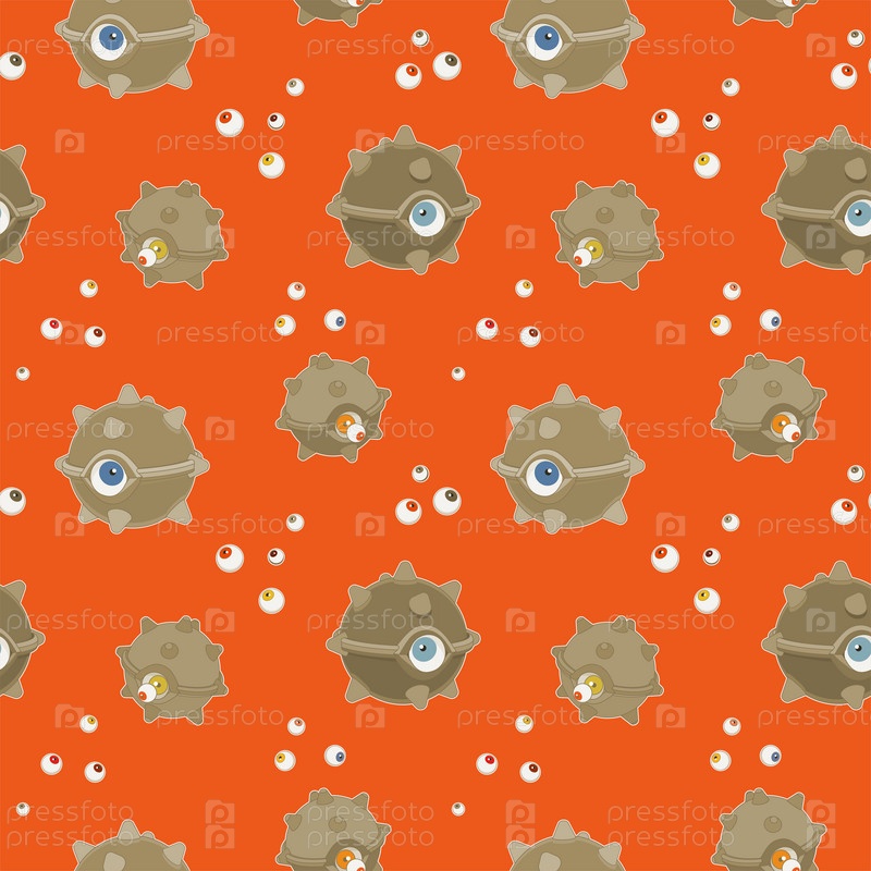 Ужасные леденцы для глазных яблок на Хэллоуин. Бесшовный узор в стиле модного поп-арта, оранжевый фон