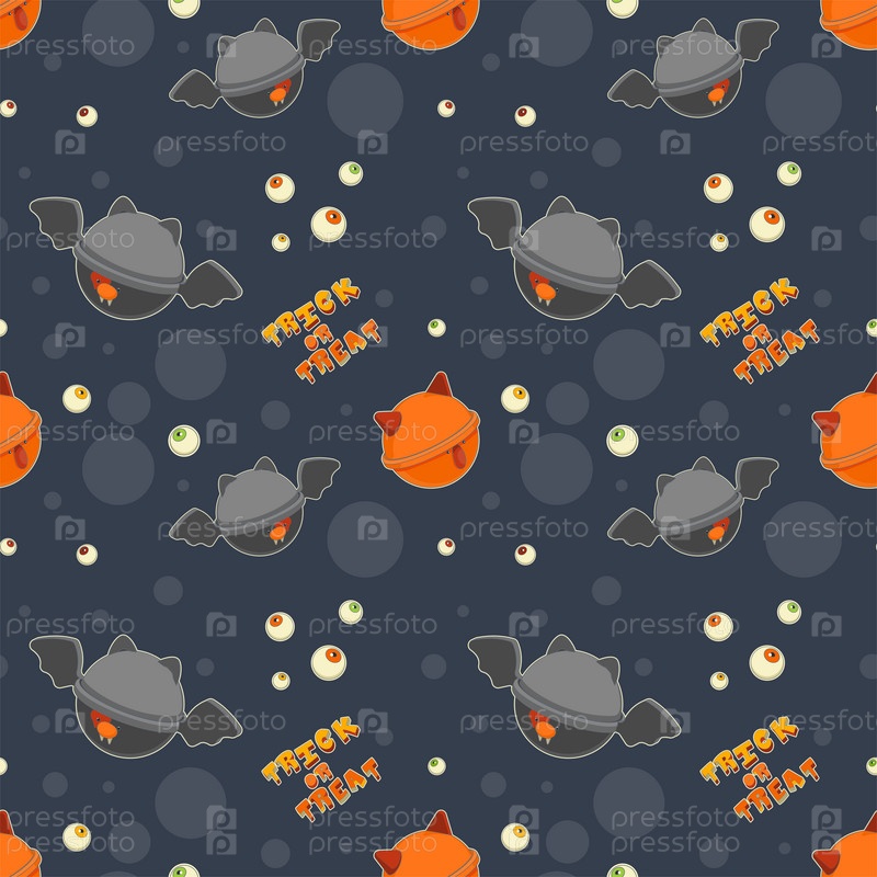 Монстры-леденцы Хэллоуина. Бесшовный узор в стиле модного поп-арта, темный фон