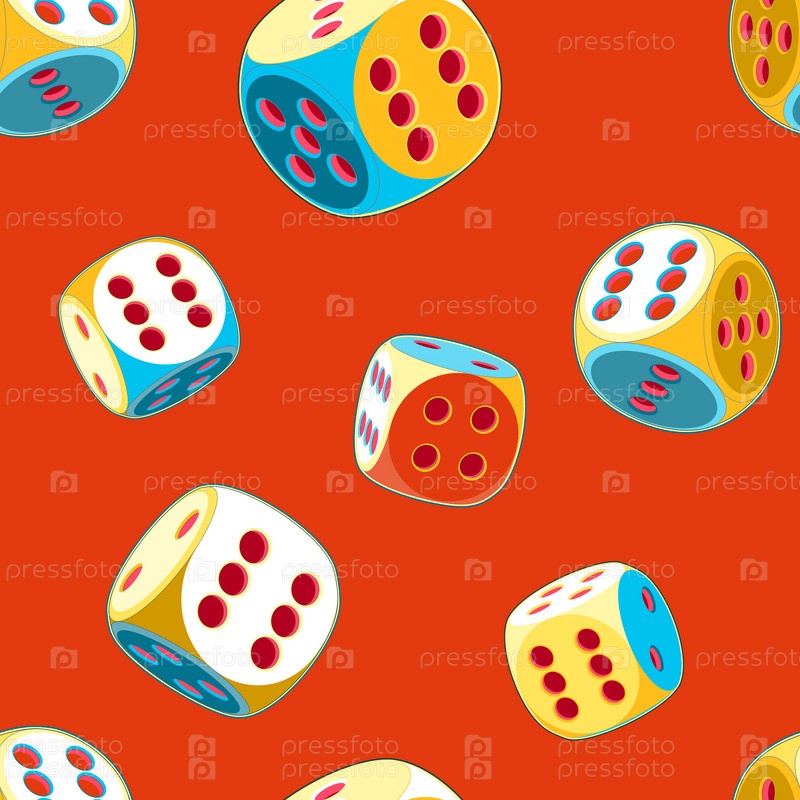 Поп-арт красный бесшовный узор с броском счастливых костей двойной шестеркой