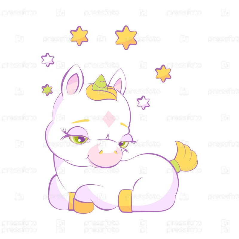 Милый маленький белый единорог в звездном венке
