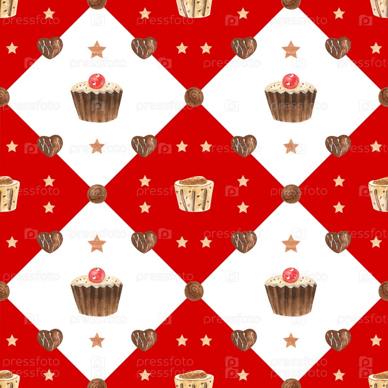 Сладкий романтический узор с шоколадными конфетами и бриллиантами