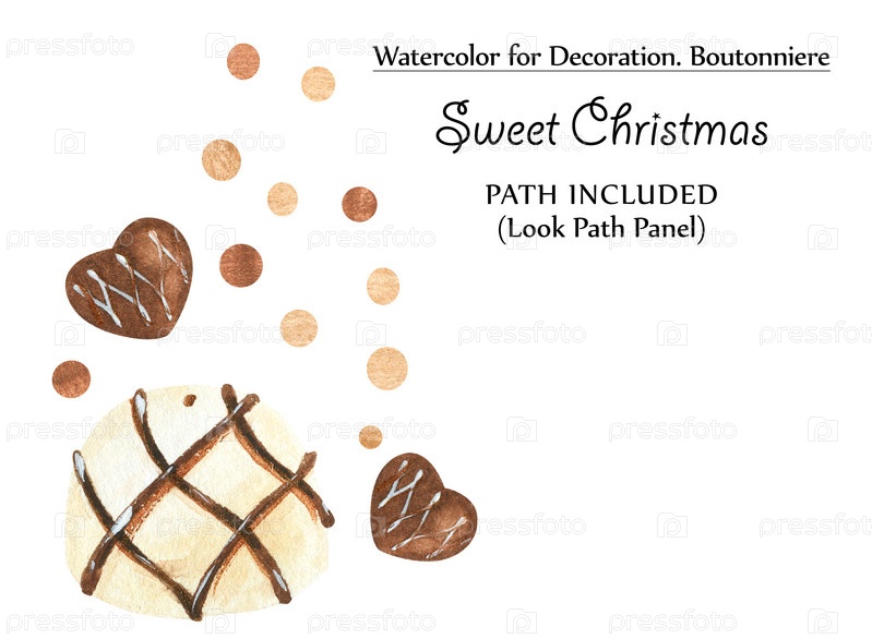 Сладкие акварельные виньетки с пряниками и шоколадными конфетами