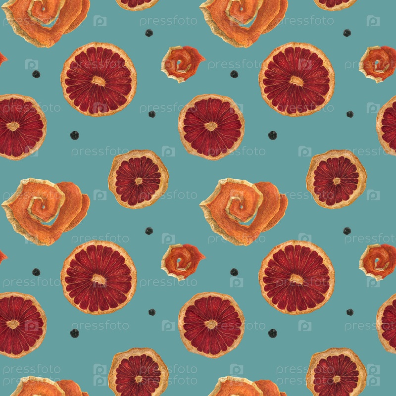 Кусочки сушеного апельсина бесшовный узор, акварель в винтажных цветах
