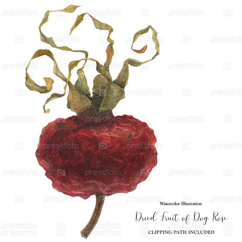 Сушеное бедро собачьей розы, акварельная иллюстрация, изолированный и вырезаемый путь