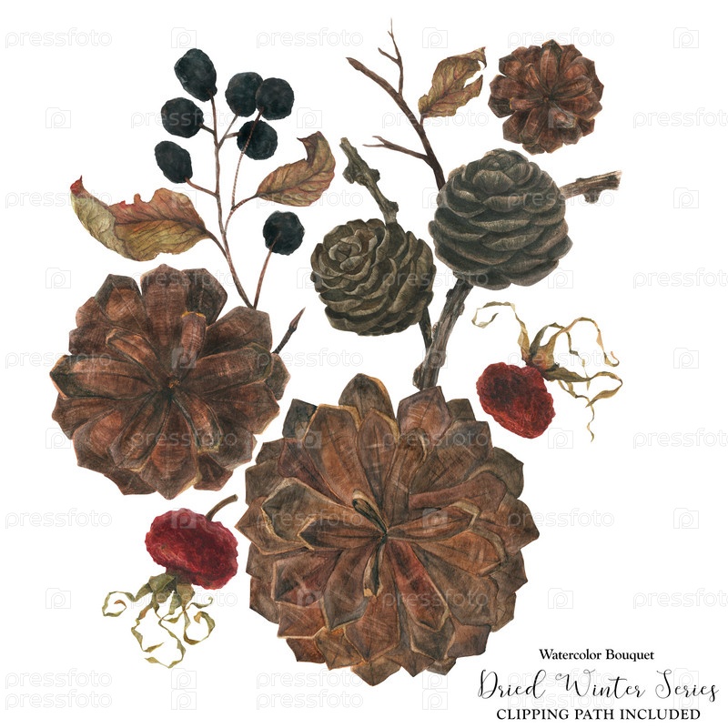 Рождественский зимний цветочный акварельный букет, в комплект входит вырезка