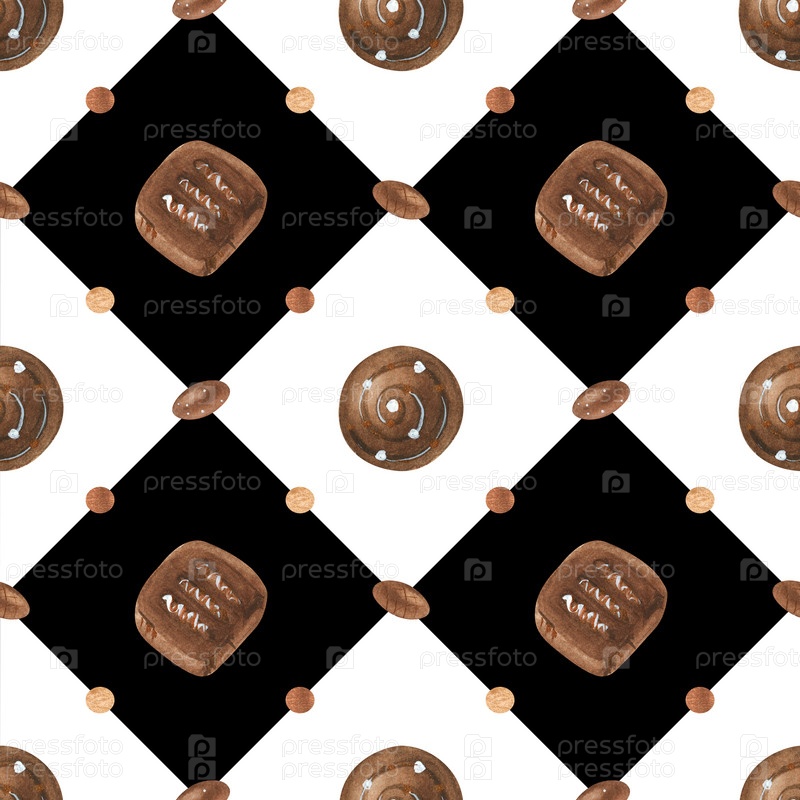 Сладкий романтический узор с шоколадными конфетами и бриллиантами