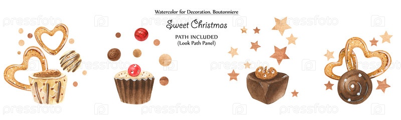 Набор акварельных виньеток с пряниками и шоколадными конфетами