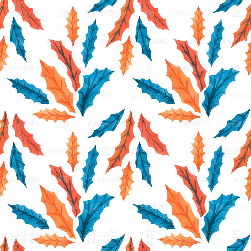 Рождественские акварельные бесшовные узоры с листьями падуба