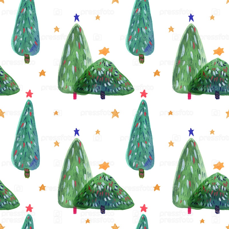 Рождественская елка рисованной акварелью бесшовный фон