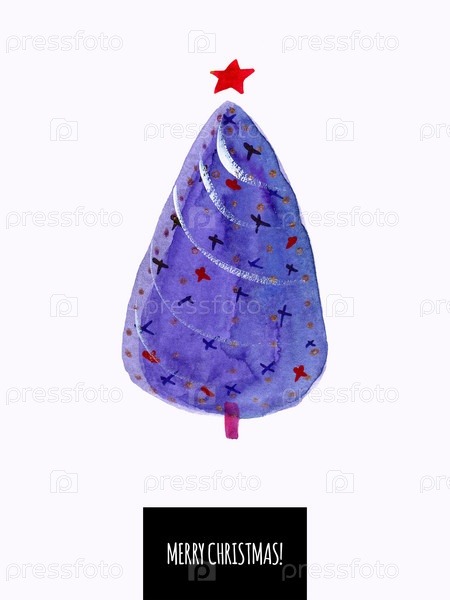 Рождественская елка, нарисованная вручную акварелью, открытка