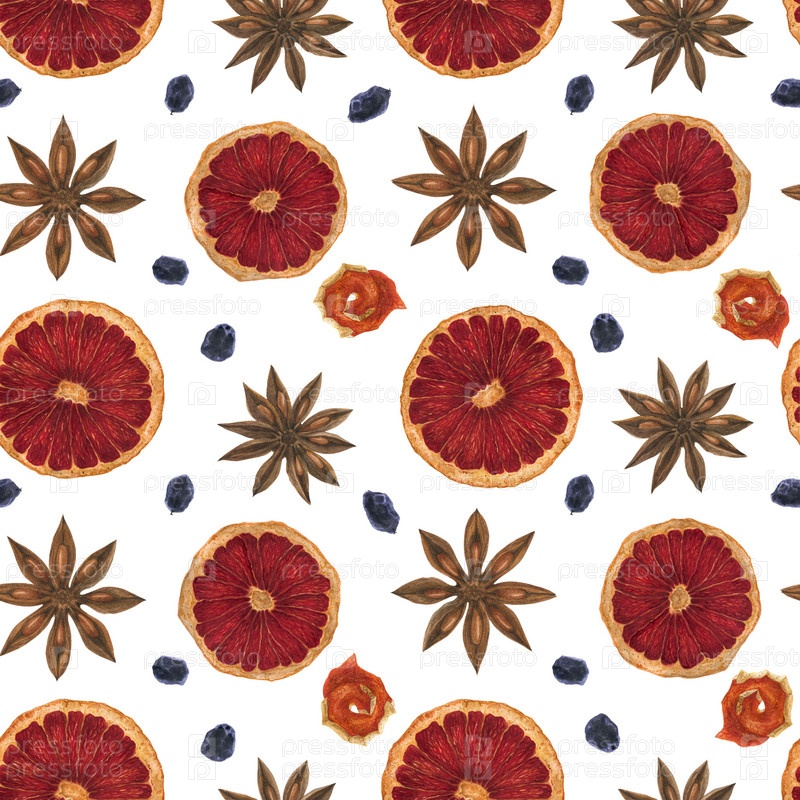 Рождественское горячее вино, яркая акварель, бесшовный фон