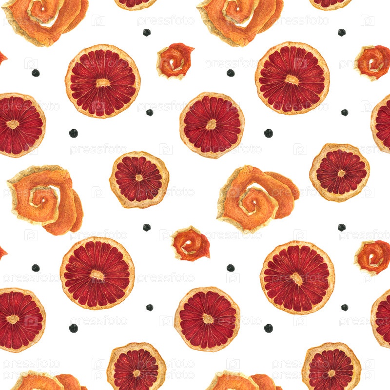 Кусочки сушеного красного оранжевого акварельного бесшовного рисунка