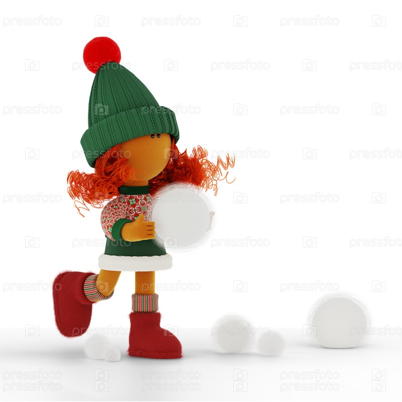 Милая кудрявая рыжеволосая куколка играет в снежки
