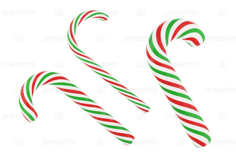 Рождественские полосатые красные, зеленые и белые конфеты 3D-рендеринг иллюстраций к рождественским и новогодним праздникам