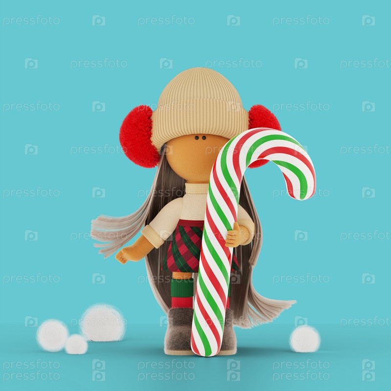 Рождественская тряпичная кукла-блондинка с полосатой красно-зелено-белой конфеткой