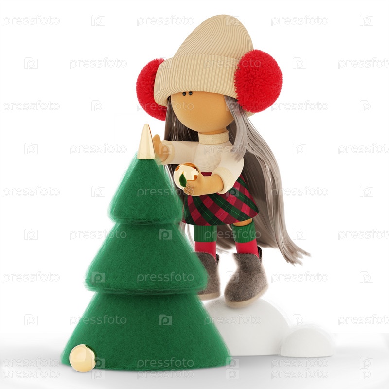 Рождественская тряпичная кукла-блондинка украшает елку золотым шаром