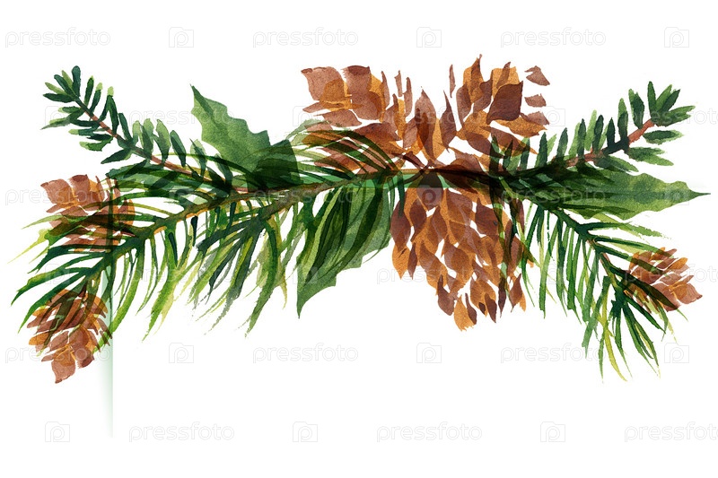 Рождественская цветочная виньетка с еловыми шишками и ветвями
