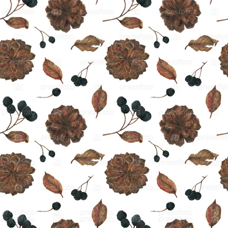 Арония и сосновые шишки на Рождество бесшовный фон