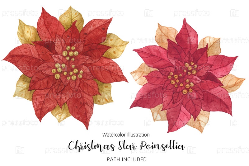 Пуансеттия Красная Золотая Рождественская Звезда