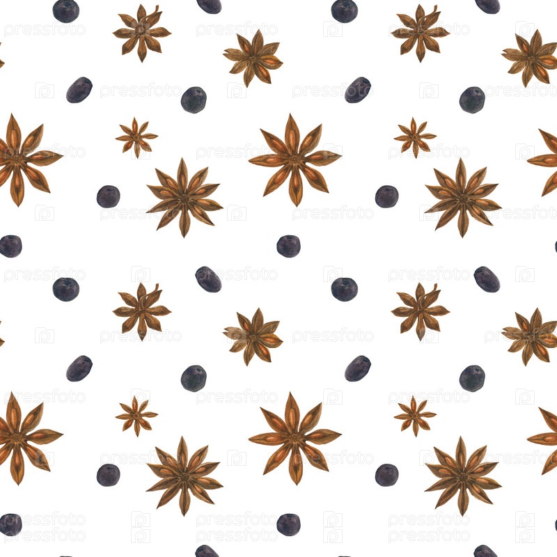 Сушеный анис и ягоды белый бесшовный узор
