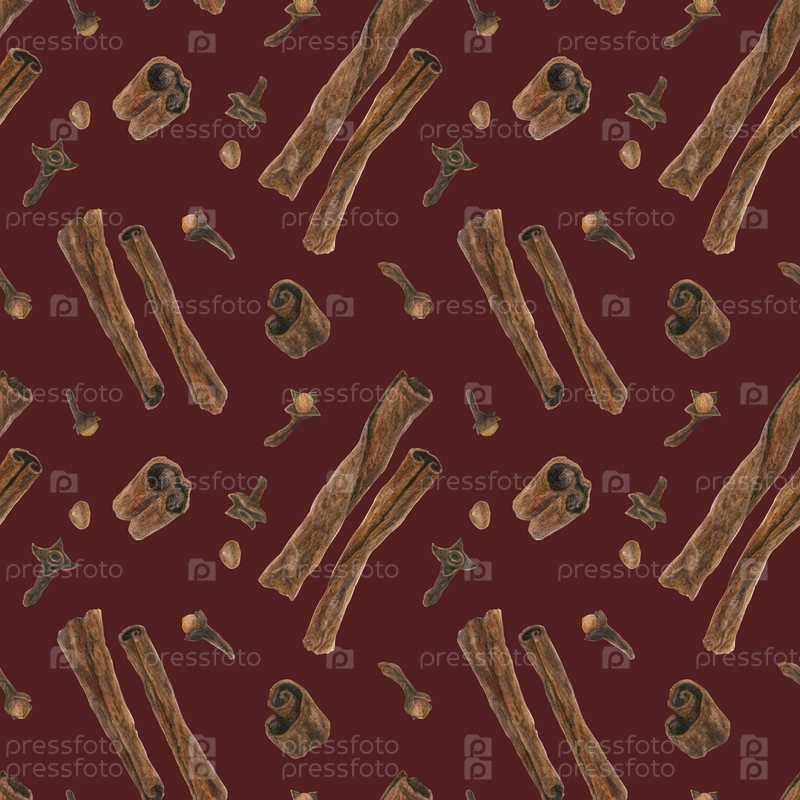 Сушеная корица и гвоздика красный бесшовный узор