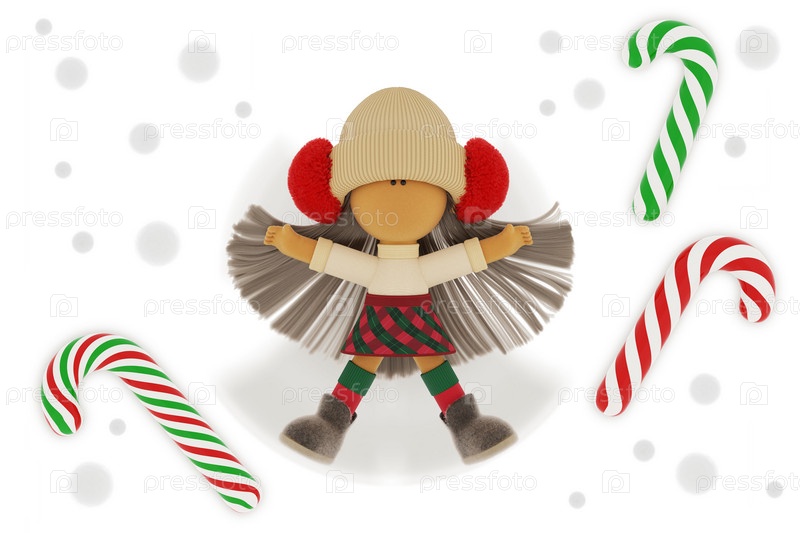 Рождественская тряпичная кукла-блондинка в образе снежного ангела с леденцами
