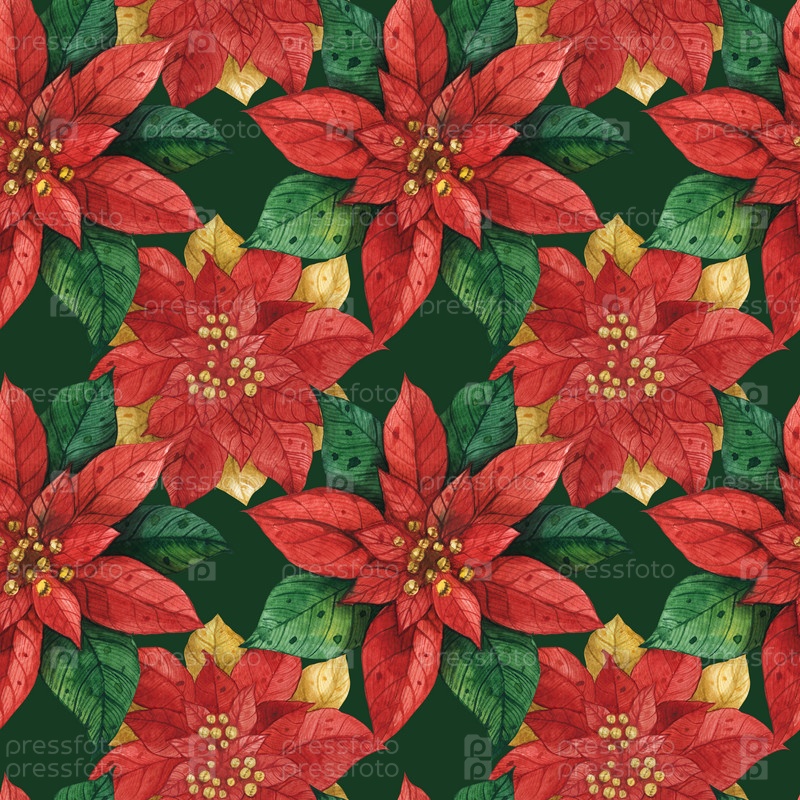 Рождественская звезда Пуансеттия темный бесшовный узор