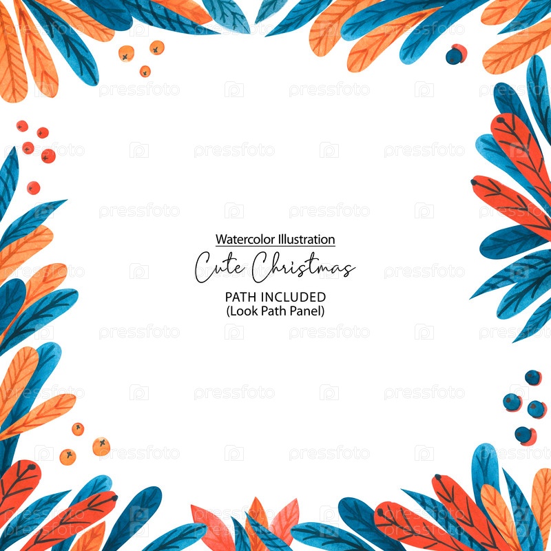 Рождественская акварельная рамка с ветками