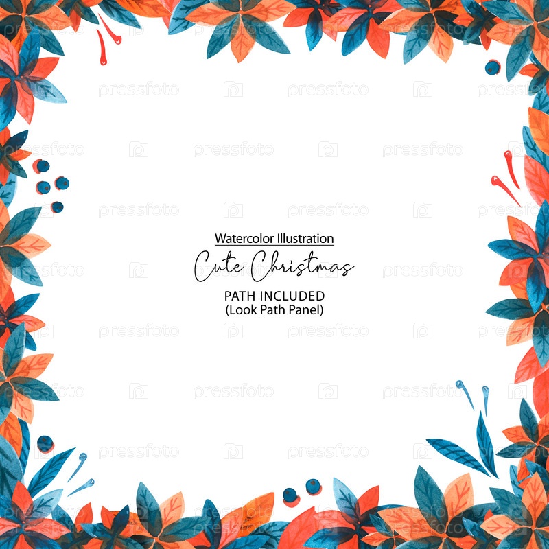 Рождественская акварельная рамка с пуансеттией