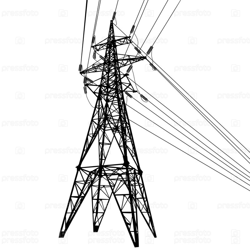 Силуэт линий электропередачи высокого напряжения на белом фоне иллюстрации