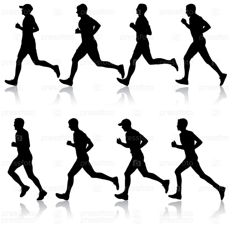 Набор силуэтов. Бегуны на спринте, мужчины