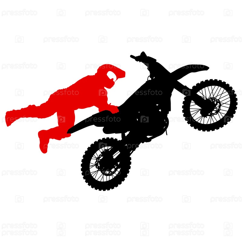 Силуэт мотоциклиста, выполняющего трюк на белом фоне