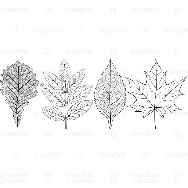 Установите эскизы силуэтов листьев на белом фоне иллюстрации