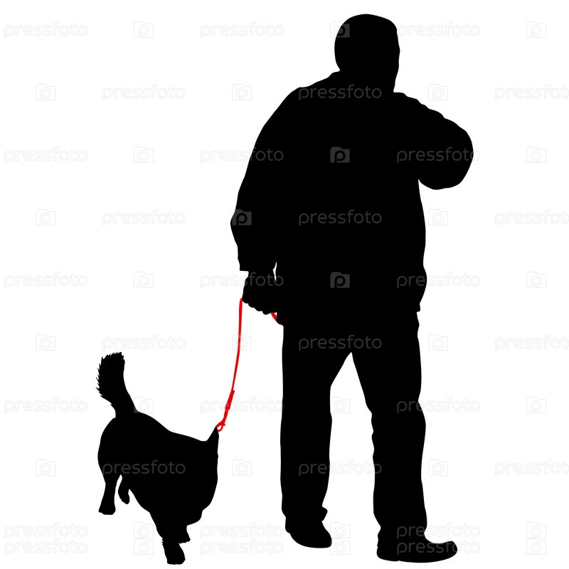 Силуэт человека и собаки на белом фоне