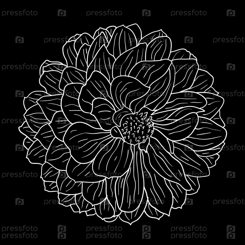 Красивый монохромный эскиз, черно-белый цветок георгина изолирован