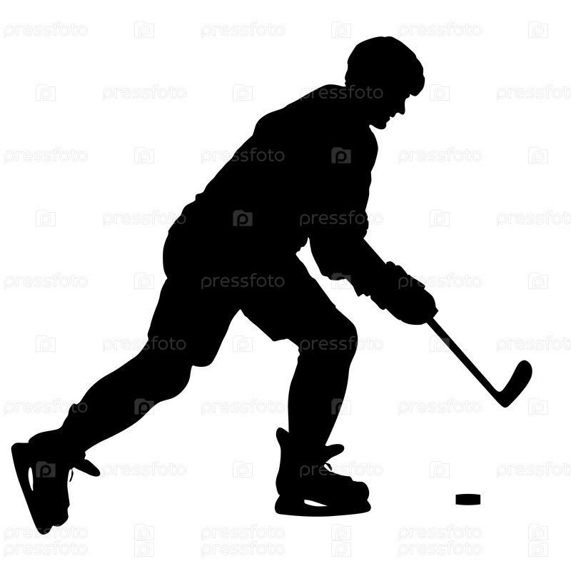 Силуэт хоккеиста. Изолированные на белом