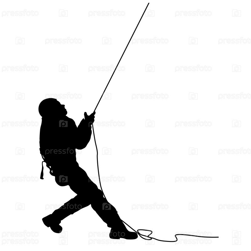 Черный силуэт мастера тянет веревку на белом фоне