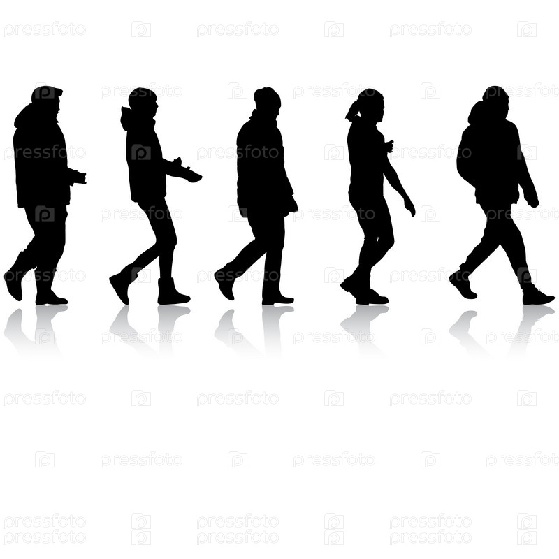 Силуэт группы людей, стоящих на белом фоне