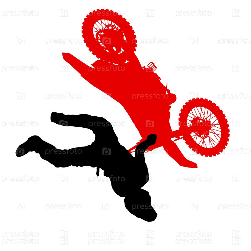 Силуэт мотоциклиста, выполняющего трюк на белом фоне