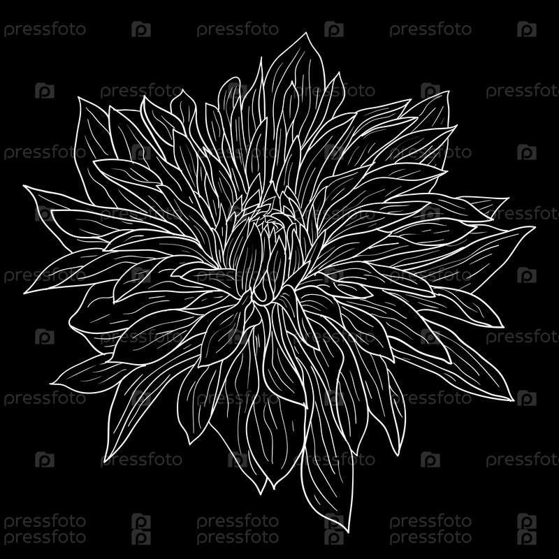 Красивый монохромный эскиз, черно-белый цветок георгина изолирован
