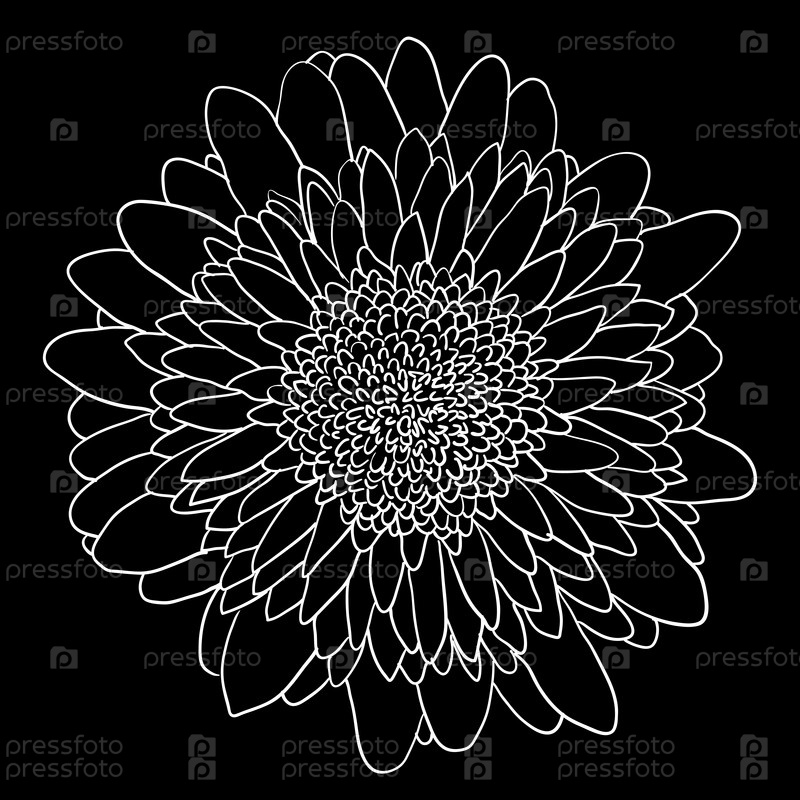Красивый монохромный эскиз, черно-белый цветок георгина изолирован